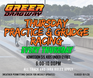 Practice & Grudge Racing for tonight has been canceled. We know everyone is ready to get back to Thursday nig ...
